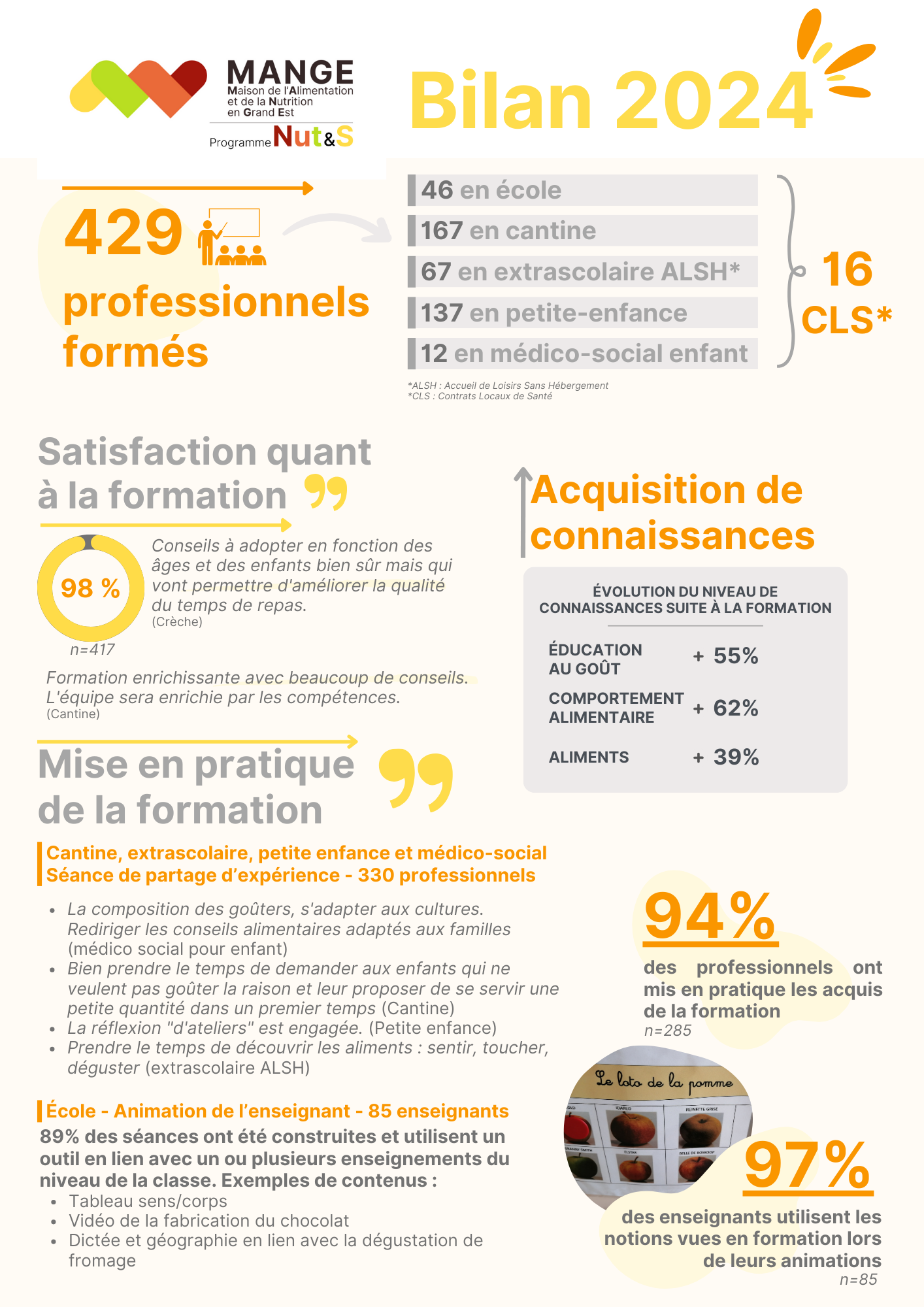 « Je souhaitais vous remercier ainsi que toute votre équipe pour les interventions réalisées au sein de la structure. Cela a permis aux agents ( au nombre de 26) de se poser ensemble et de réfléchir sur cette thématique. J’avais souhaité cette formation en intra pour que tout le monde puisse entendre les mêmes choses, échanger entre elles, trouver des améliorations possibles, et dynamiser l’équipe. Bien que la diététicienne trouve l’équipe déjà bien sensibilisée, cela leur a permis d’évoluer sur certains points, et de les conforter sur d’autres. Vous avez su les valoriser sur leur quotidien